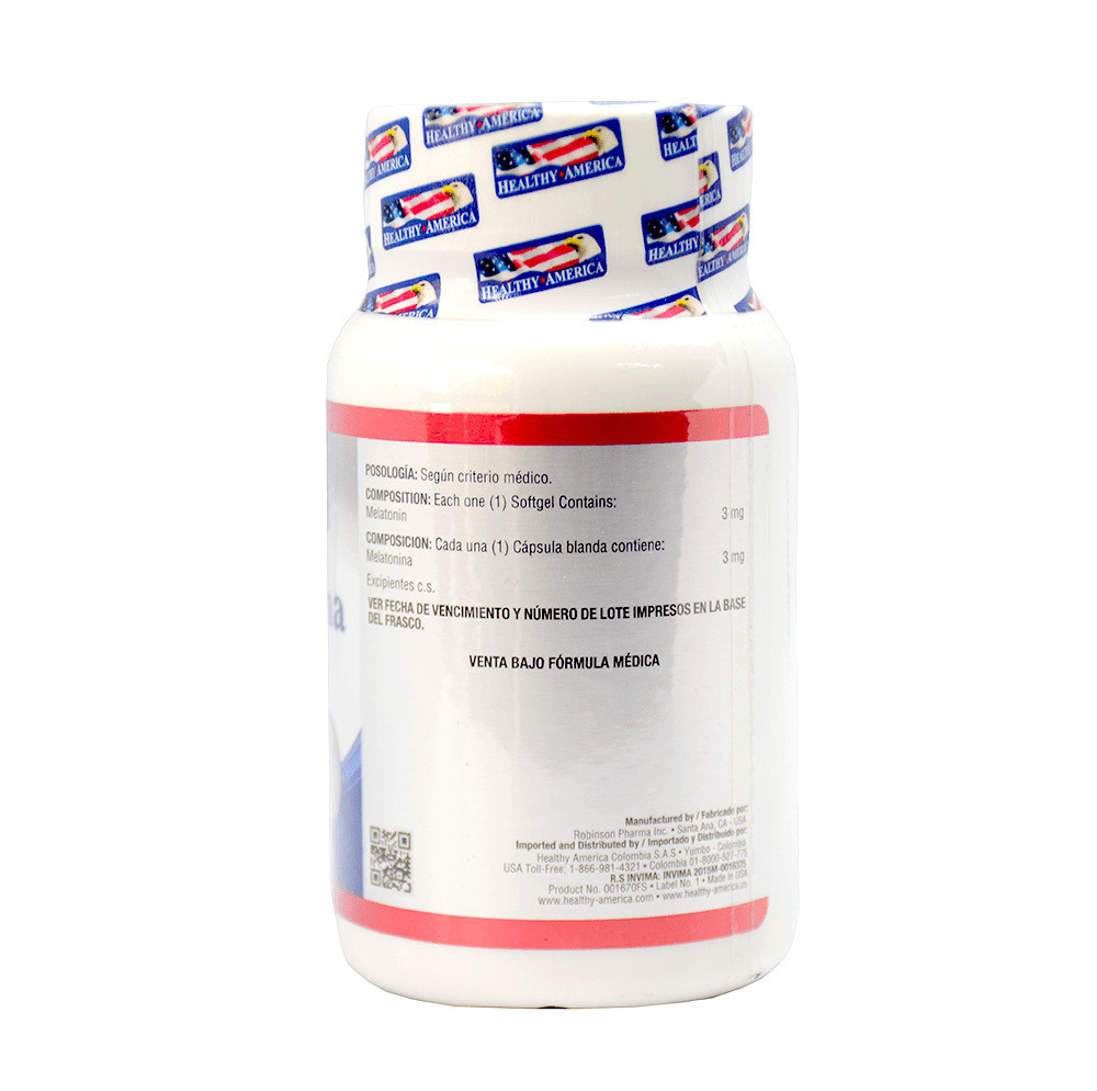 La Melatonina 3mg Frasco 120 Softgels de Healthy America es un suplemento alimenticio natural que ayuda a regular el ritmo circadiano del sueño.