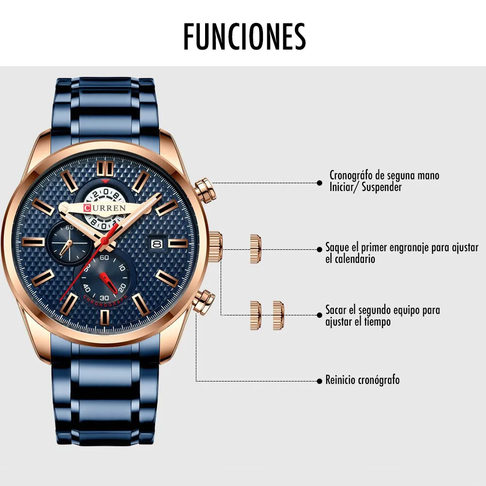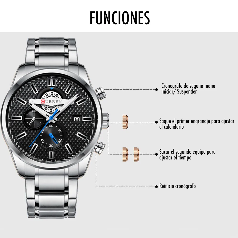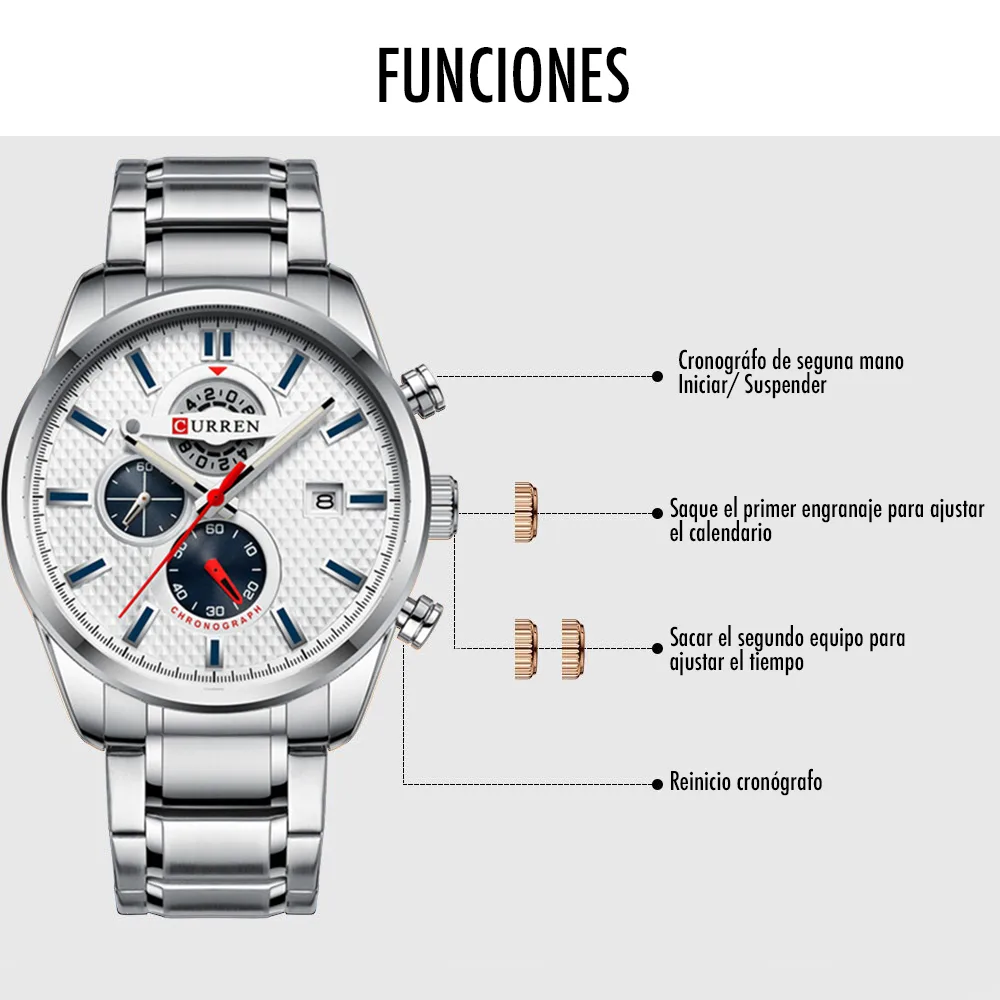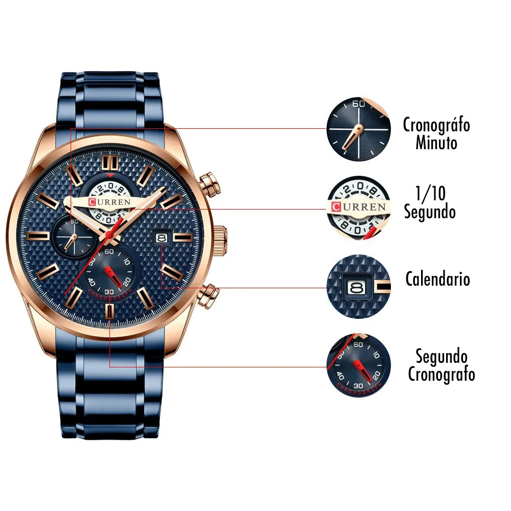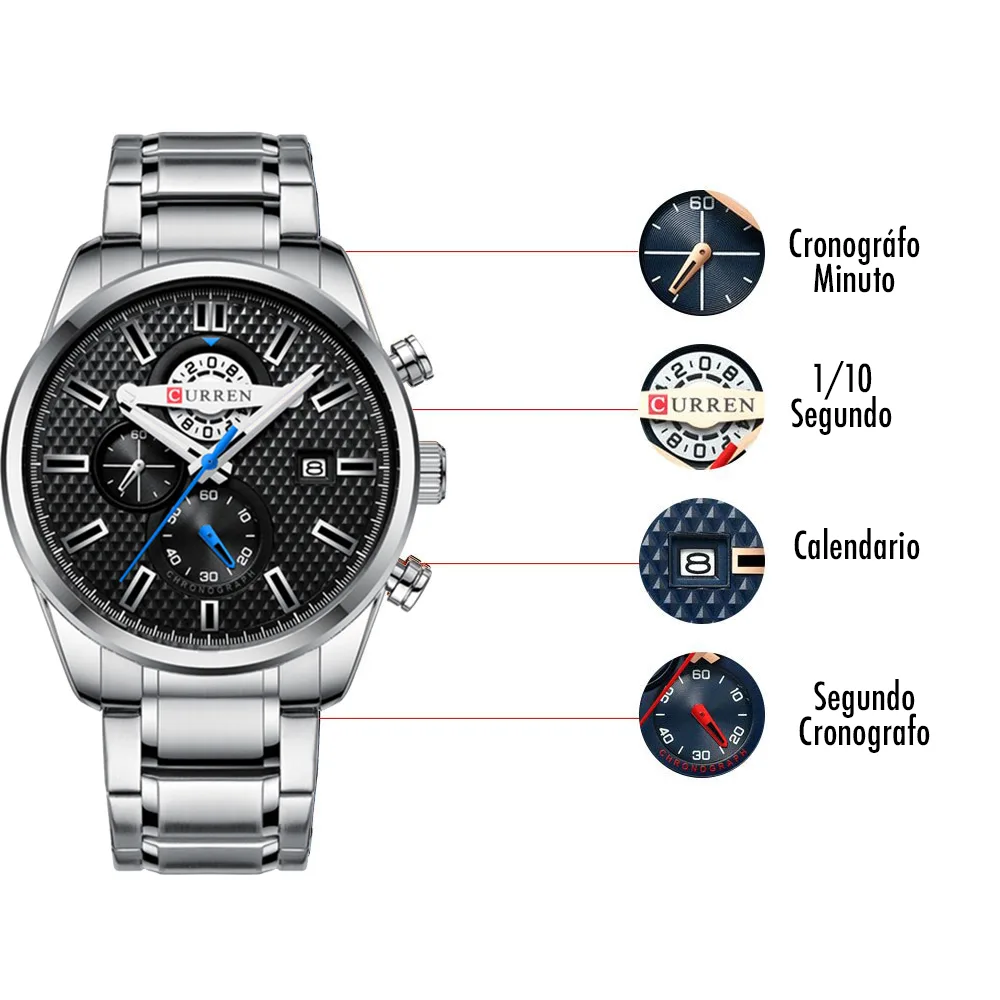 Reloj Curren 8352 Cronografo Hombre Correa Acero Cierre Mariposa