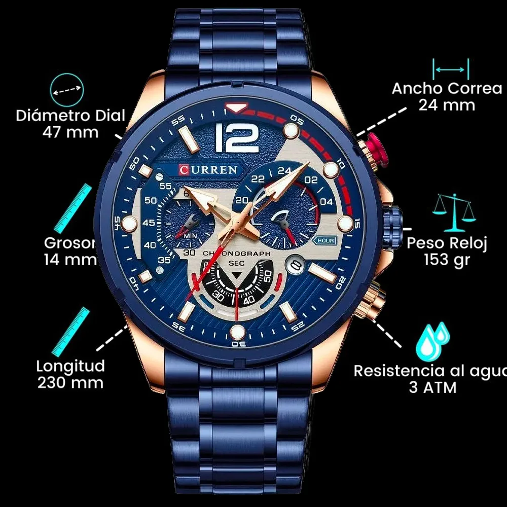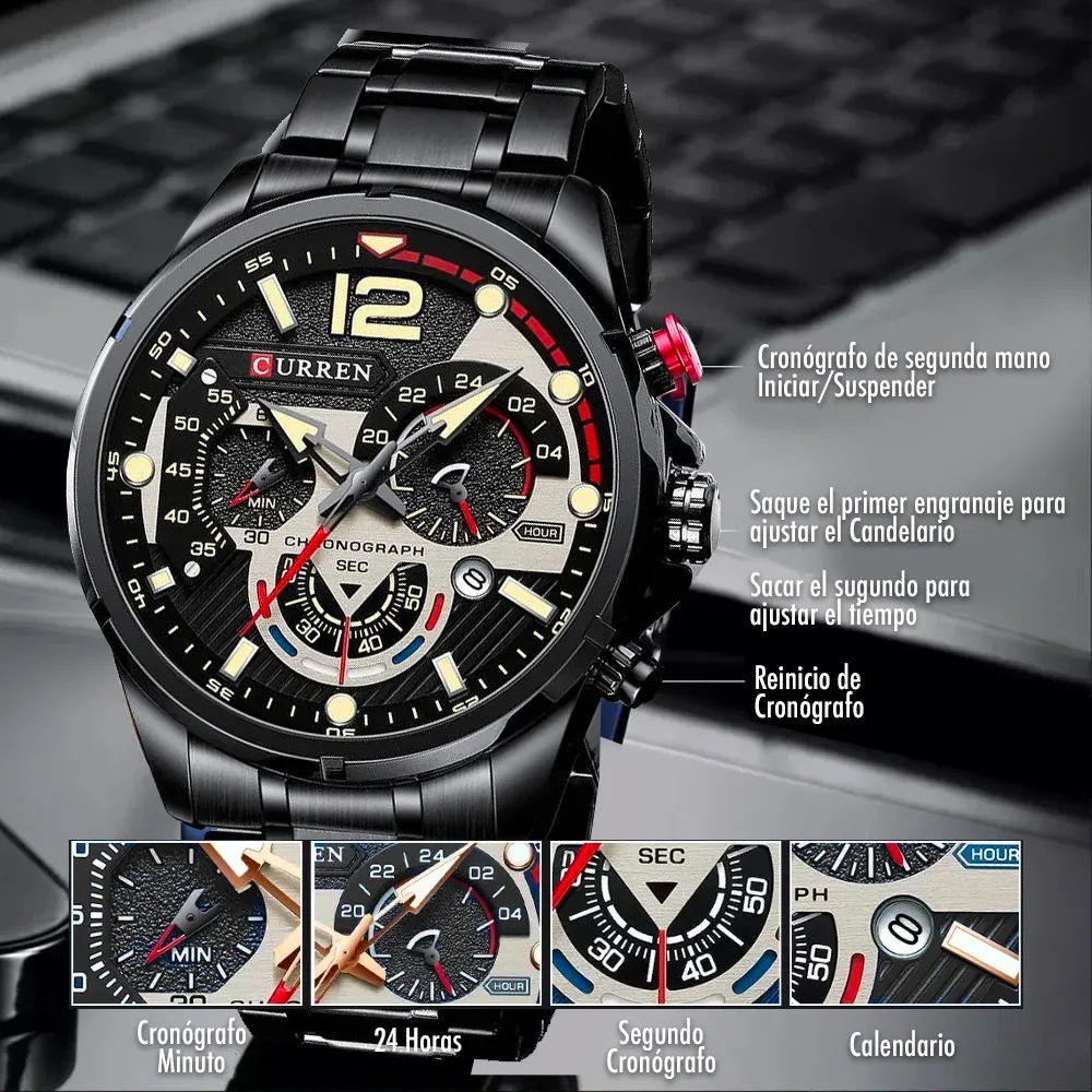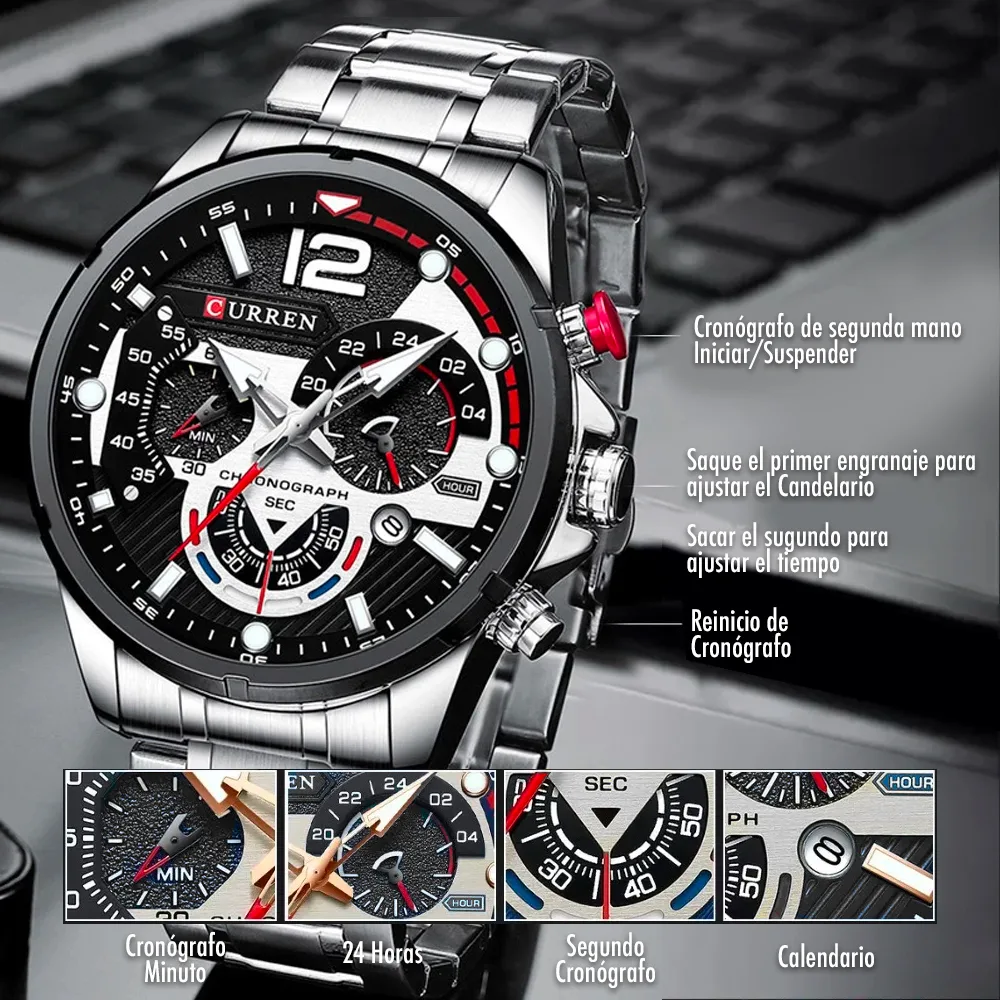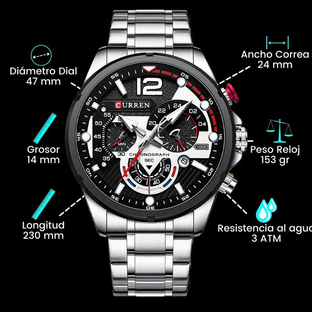 Reloj Curren 8395 Cronografo Hora Militar Hombre Correa Acero Cierre Mariposa