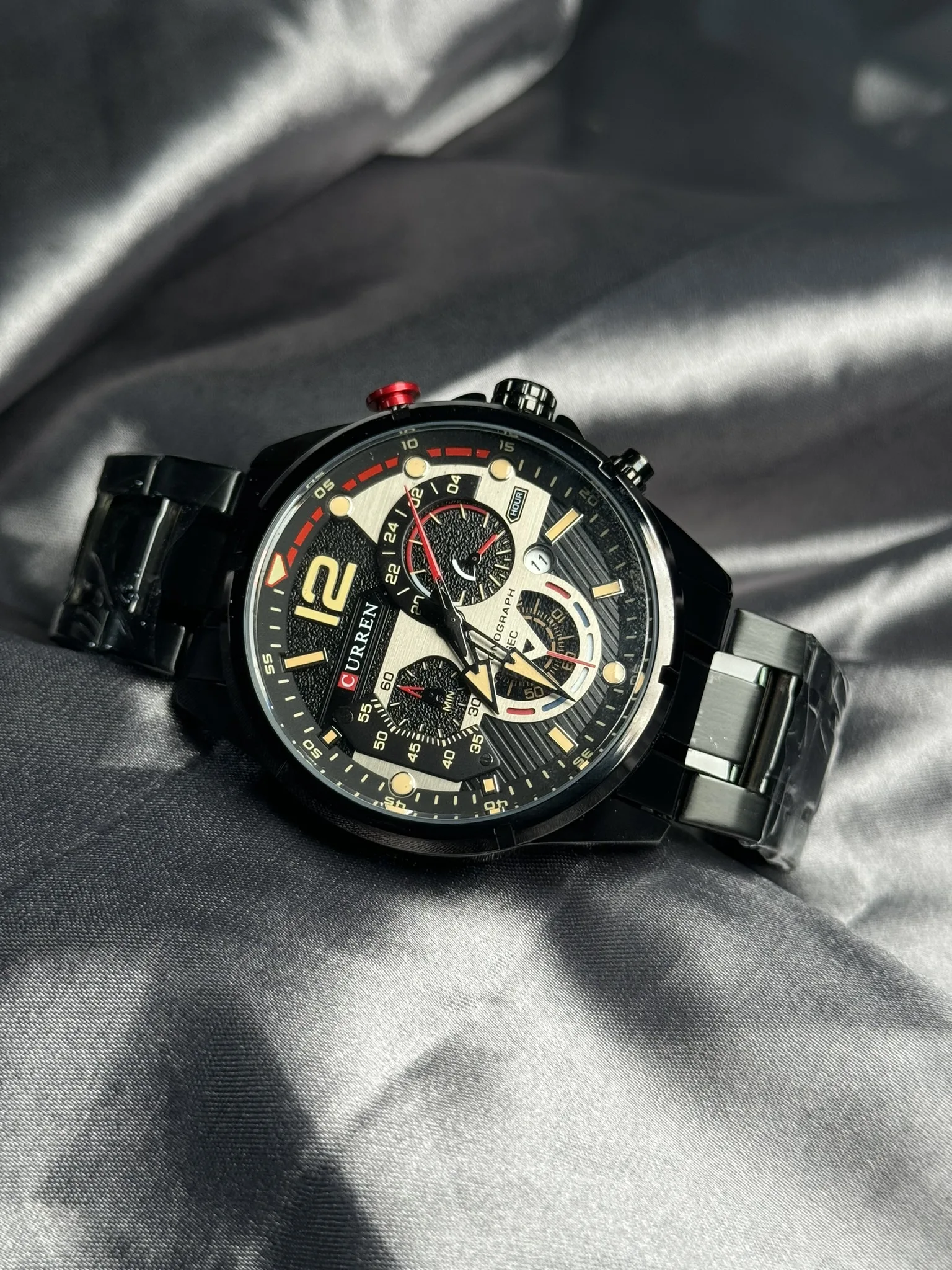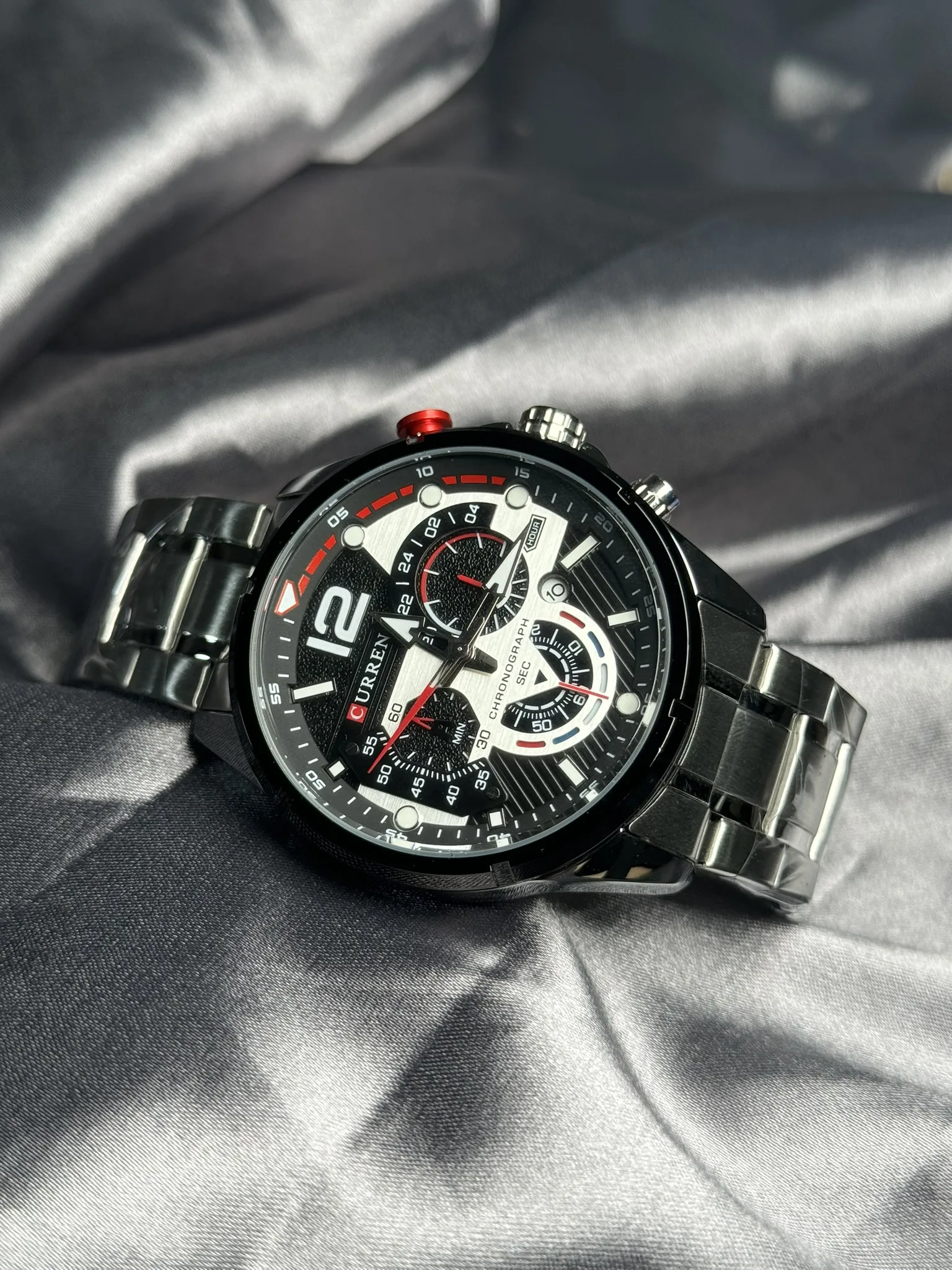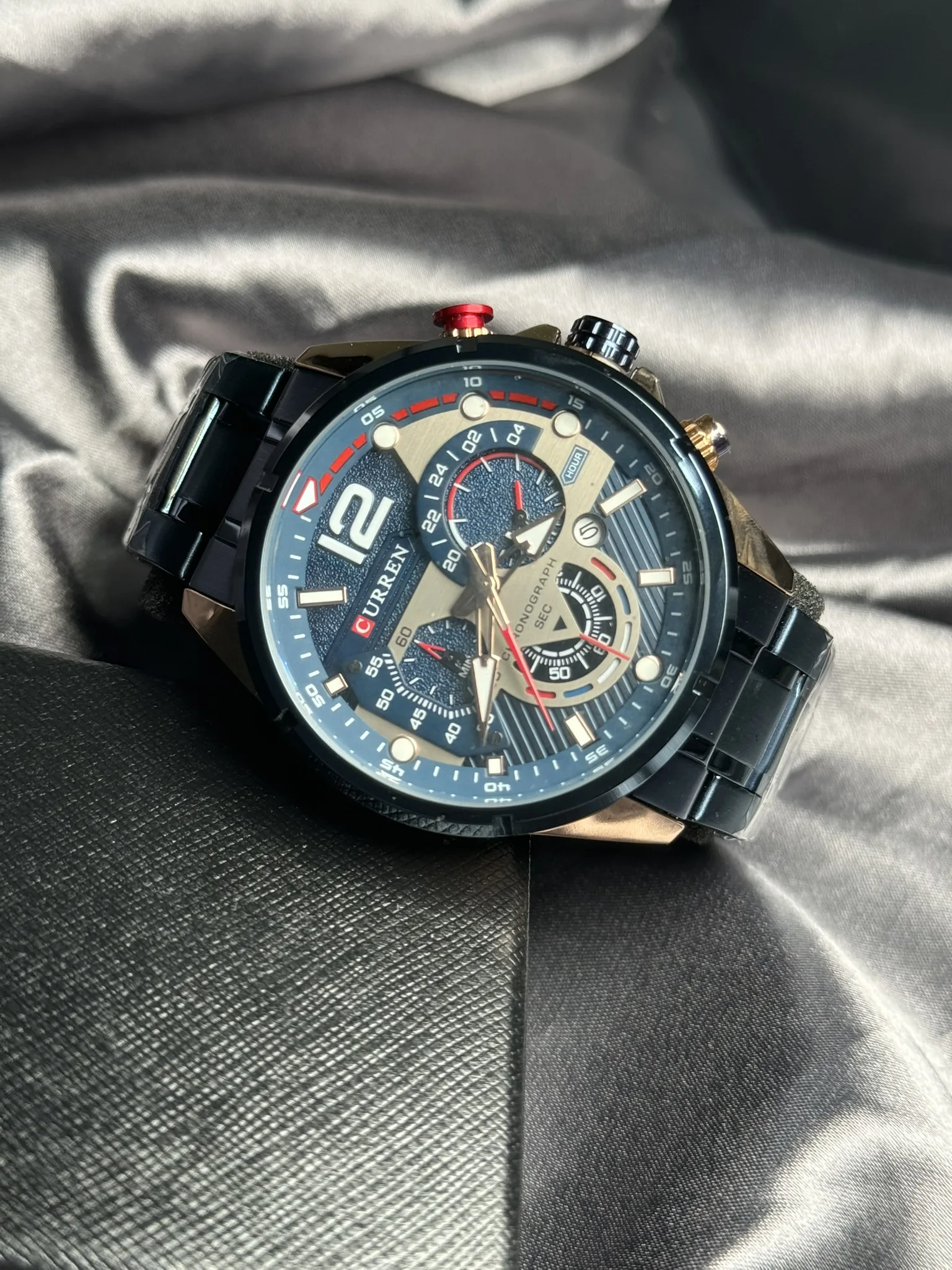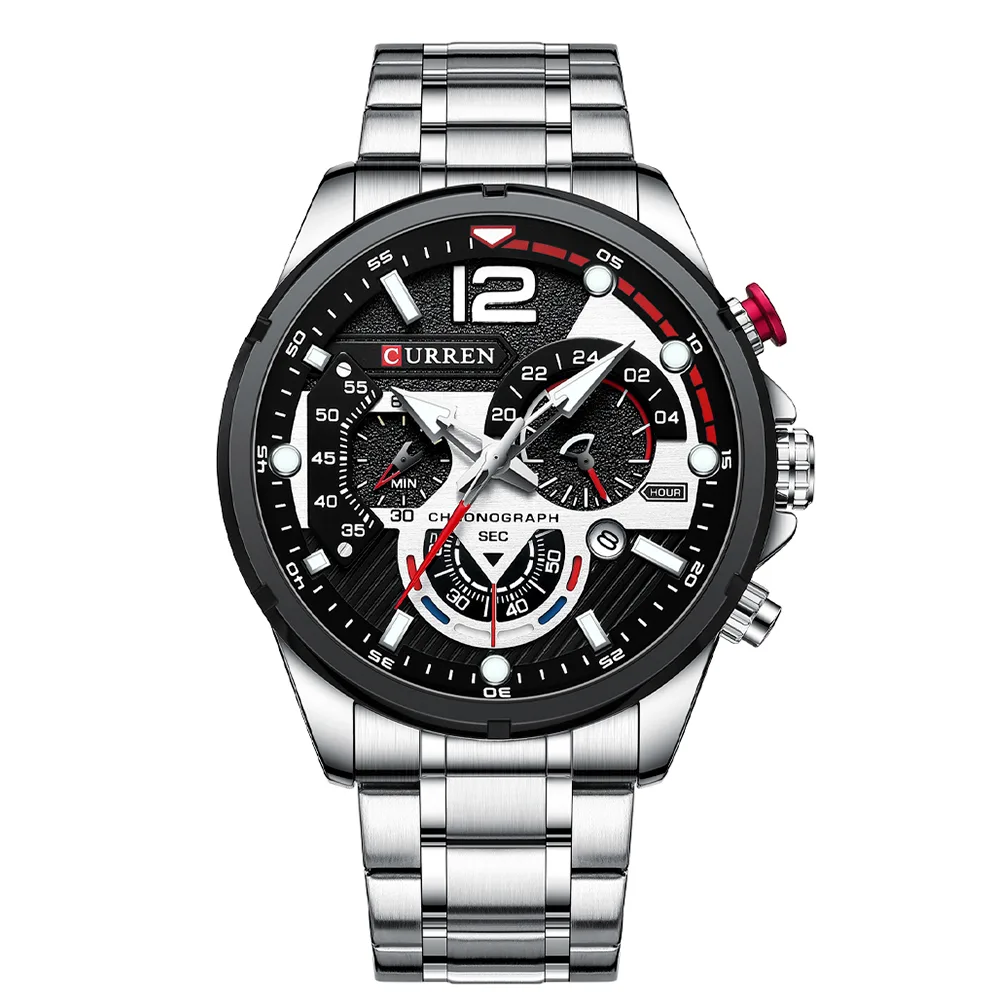 Reloj Curren 8395 Cronografo Hora Militar Hombre Correa Acero Cierre Mariposa