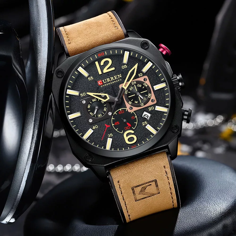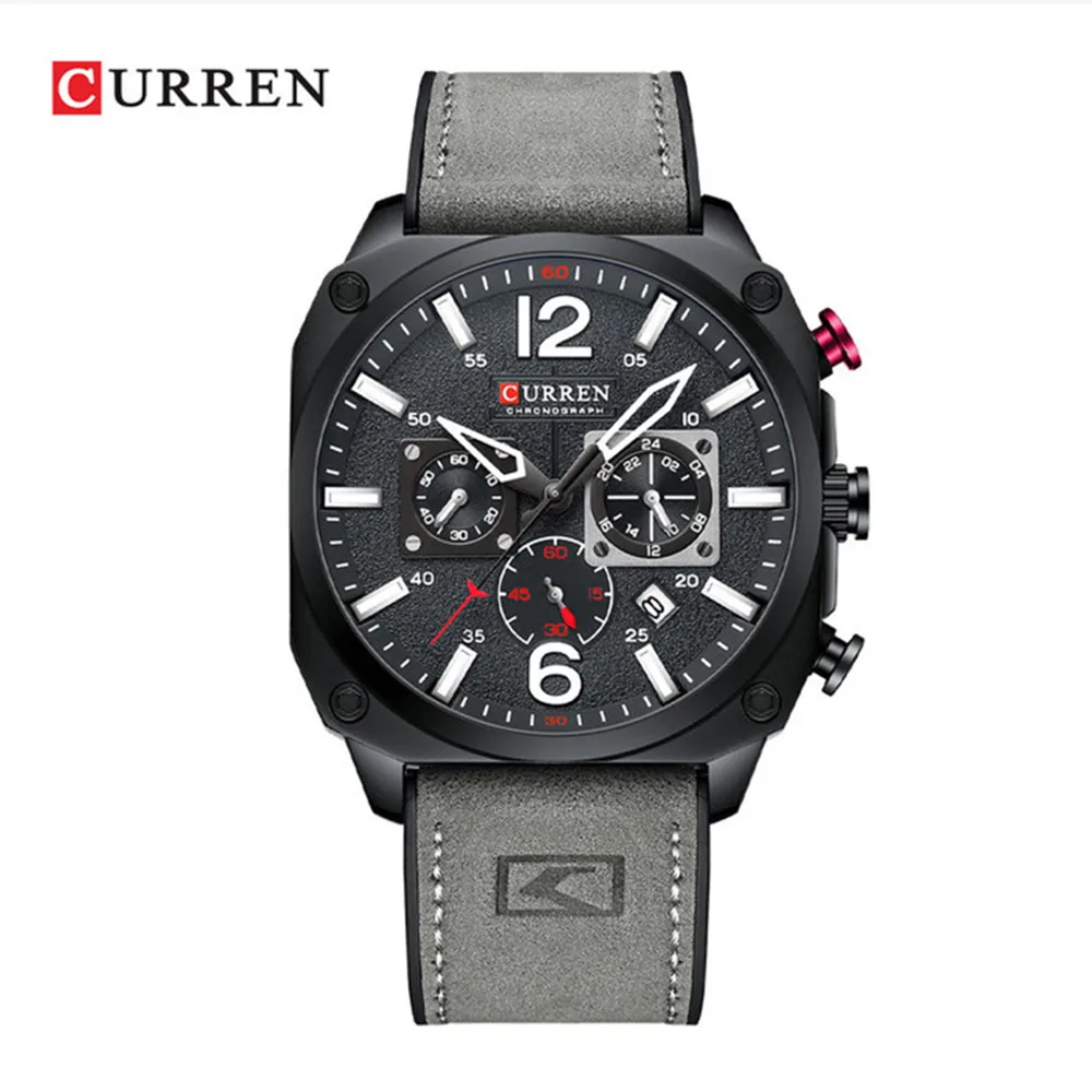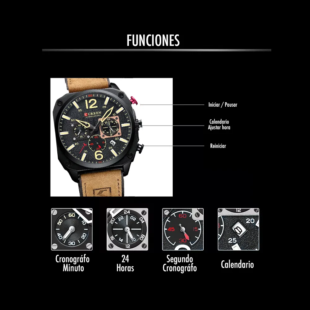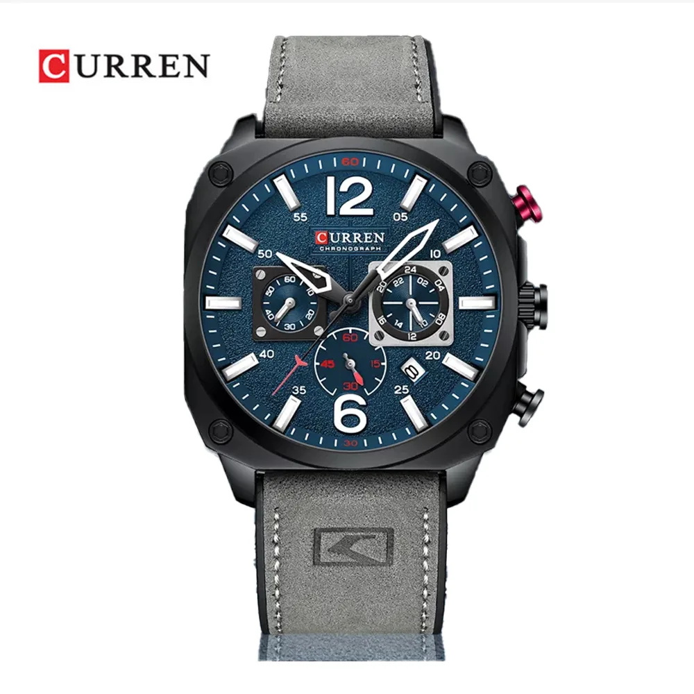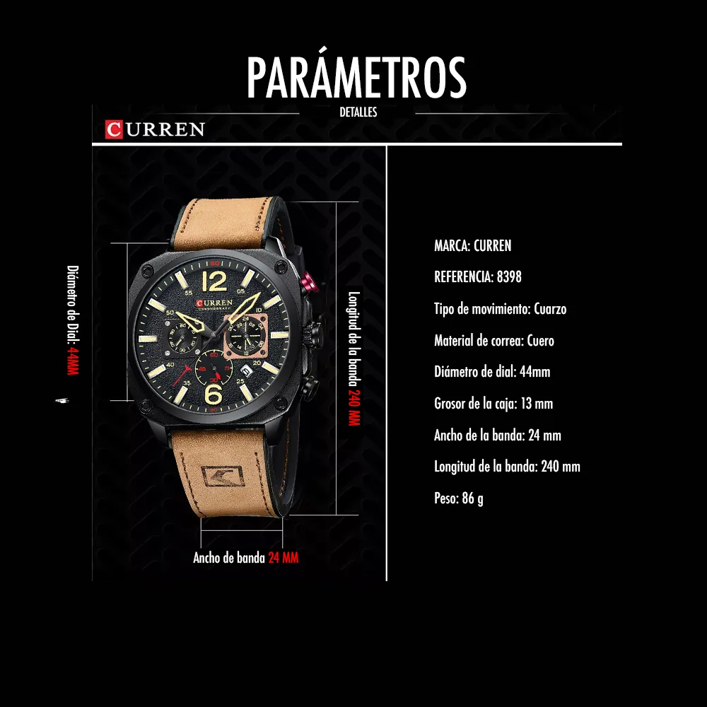 El Reloj Curren 8398 es un cronógrafo para hombre que combina diseño y funcionalidad. Caja en acero inoxidable, correa en cuero con cierre mariposa. Movimiento cuarzo, Cronógrafos funcionales, Calendario. Disponible en 4 colores. Entrega rápida en Neiva y el Huila. Referencia: 8398 | Tipo: Cronógrafo para Hombre | Movimiento: Cuarzo | Caja: Acero inoxidable | Correa: Cuero | Cierre: Mariposa | Colores: Verde, Gris - Negro, Café, Gris - Azul | Precio: $120,000 COP | Marca: Curren