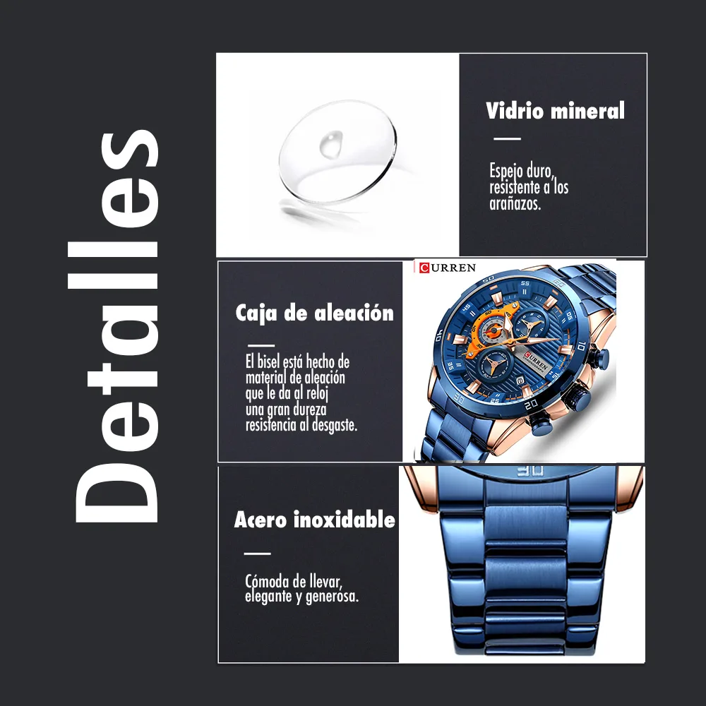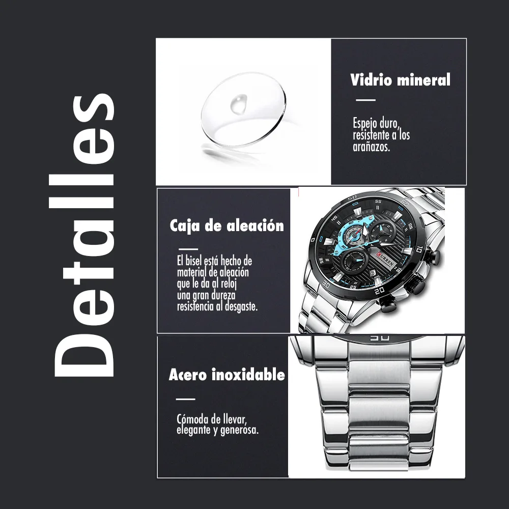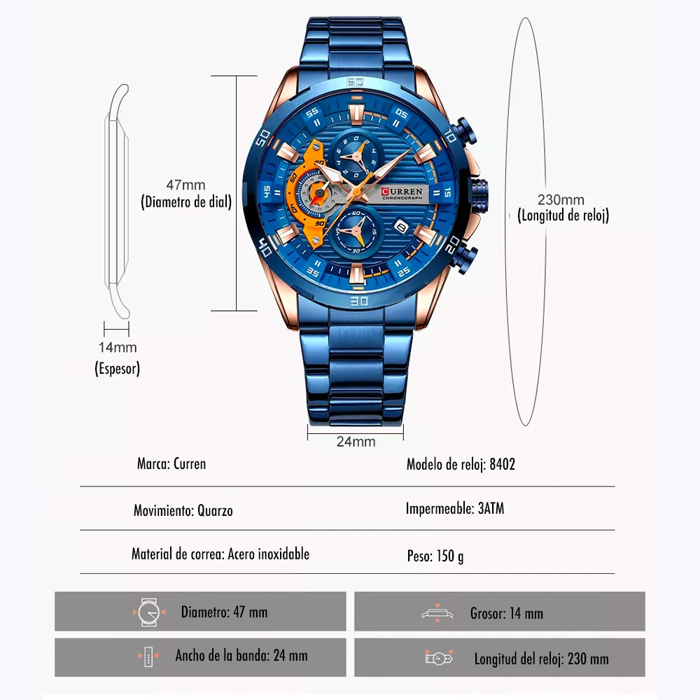Reloj Curren 8402 Cronografo Hombre Correa Acero Cierre Mariposa