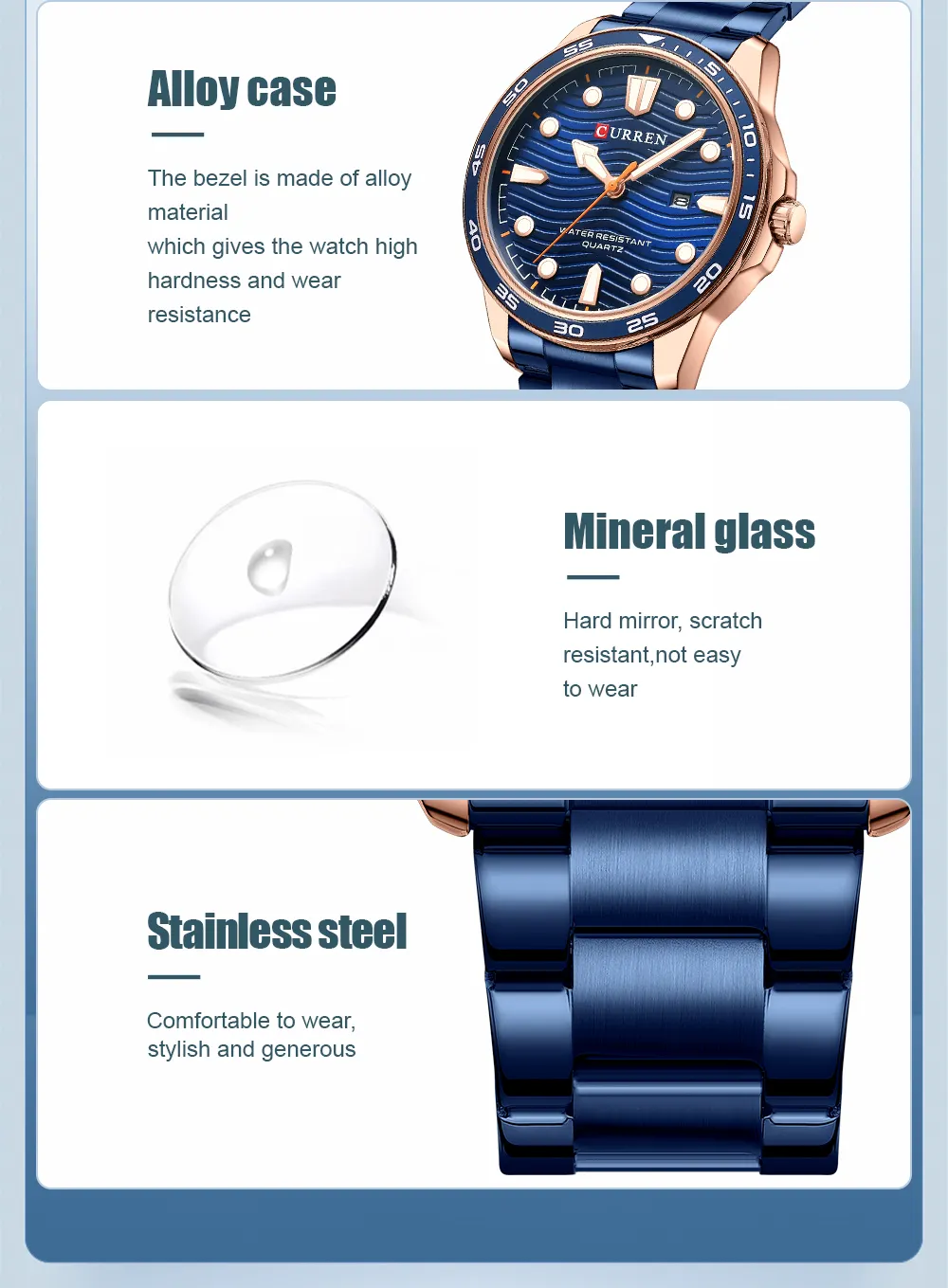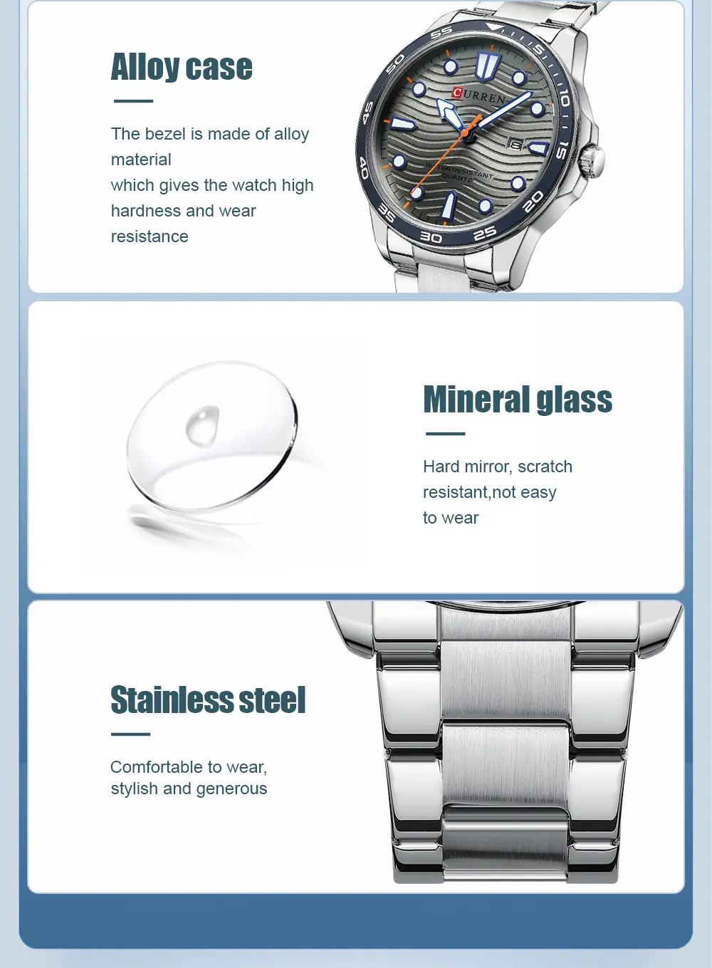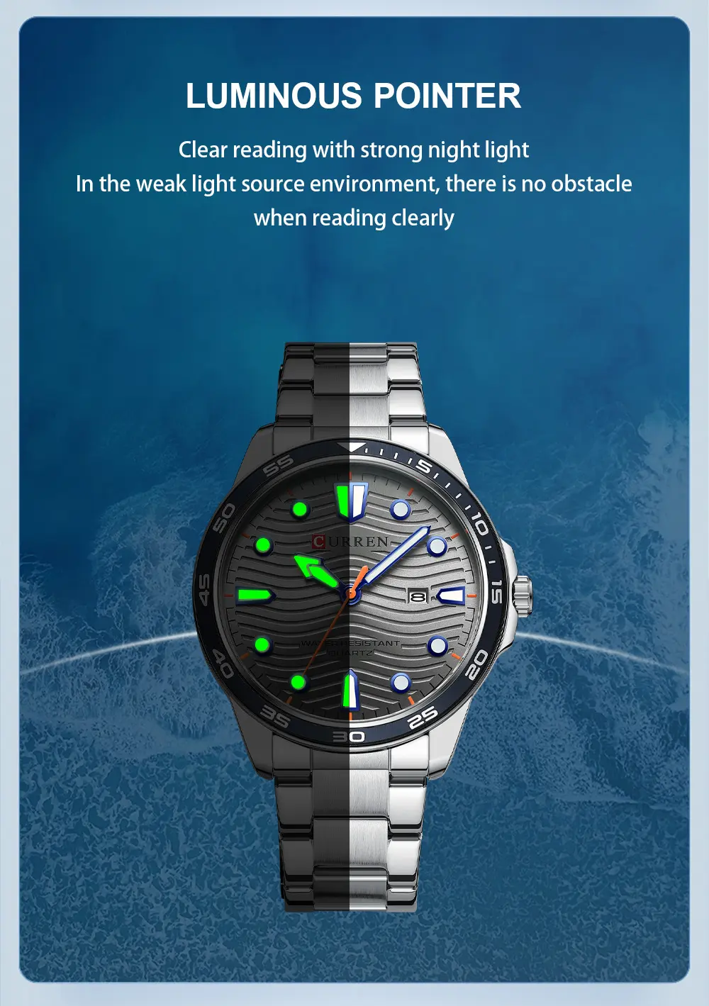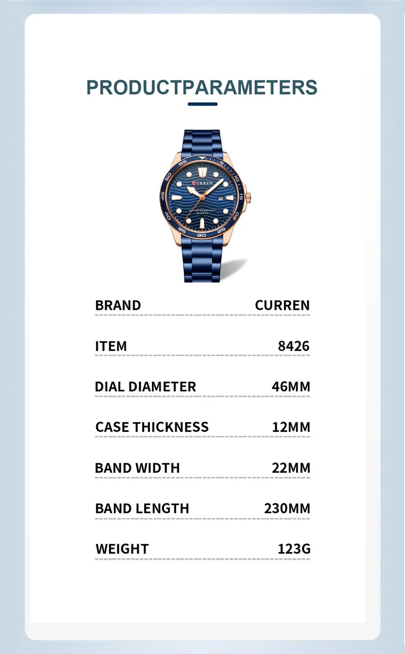 El Reloj Curren 8426 es un cronografo para hombre que combina diseno y funcionalidad. Dispone de cronografos funcionales. Movimiento de cuarzo de alta precision. Material: Acero inoxidable. Cierre pulsera: Mariposa. Colores disponibles: Azul, Dorado-Negro, Dorado-Verde, Plateado-Gris, Plateado-Negro. Precio: $160,000 COP. Envio en 1 dia habil.